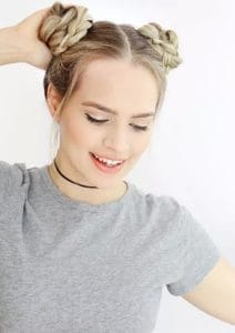 Instead of a ponytail, like little girls usually wear, you can wear two buns. The procedure is similar, gather your hair into two ponytails, braid them, and shape them into buns.